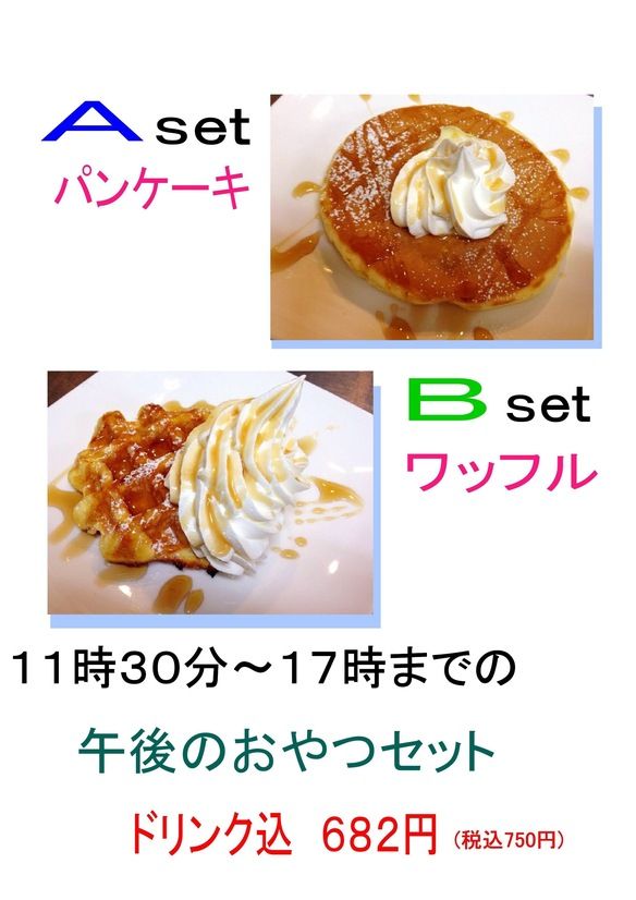 おやつセット(11時30分〜17時) ホットケーキorワッフル&ドリンク