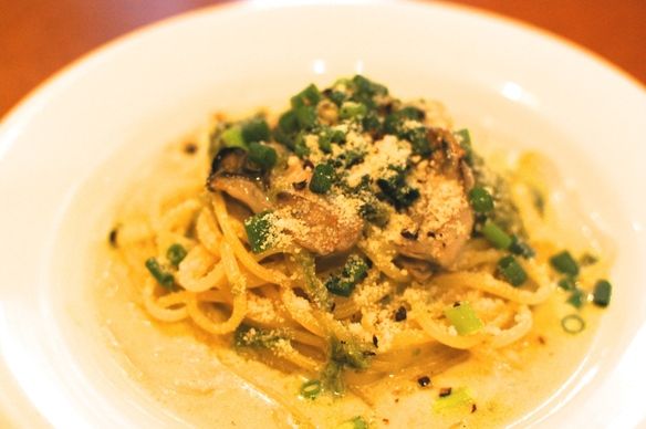 広島県よりカキとあおさ海苔、青葱のクリームソース
