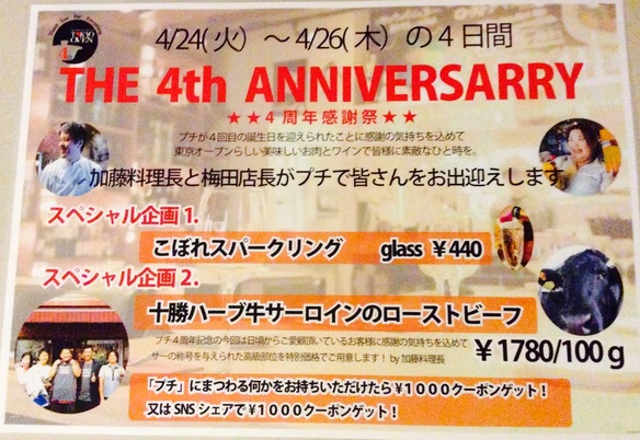 いよいよ明日に迫りました。東京オーブンプチ4周年イベントです。