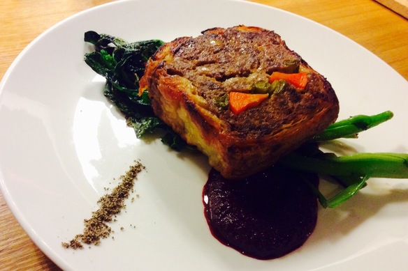 「十勝ハーブ牛のミートローフパイ 東京ビーツのソース」@1880