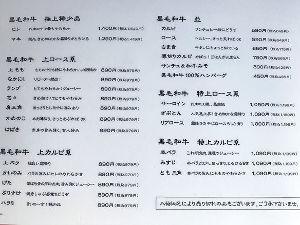 焼肉問屋牛蔵 牛蔵デリバリー のメニュー