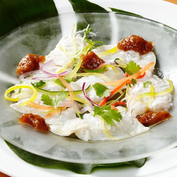 タヒチの郷土料理のポワソンクリューというお料理。 ライム&ココナッツでさっぱり。