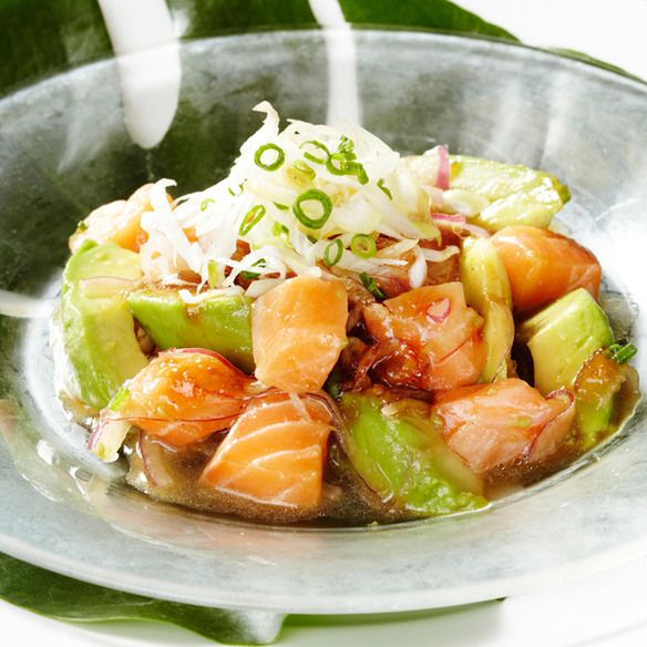 わさび醤油で味付けた、ハワイアンサーモンマリネです。アボカドとの相性抜群。