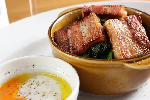 メディアでも話題の人気メニュー! 某有名人がお気に入りだという『ホウレンソウとベーコンのソテー 温泉たまご添え』は、 各種メディアなどにも取り上げられる人気のメニュー。 香ばしいベーコンとホウレンソウ、濃厚な温泉たまごの相性が堪らない。