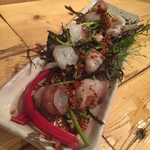 雲丹(大根おろし、めかぶ、山葵) イクラ(トロロ、青ネギ、ポン酢) バルサミコ(香味野菜、オリーブオイル)