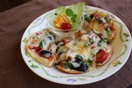 具はその時によって変化しますが、写真はアスパラガス、茄子、ベーコン、トマト、チーズがのっていて人気です♪