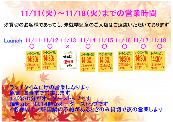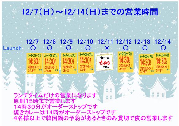 | 感染症対策 | 店員のマスク着用 キャッシュレス対応 アルコール等消毒の実施 店内換気の実施 個別皿での提供 |