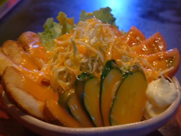 790円(税込)弊店唯一の「既製ドレッシング」のサラダ!懐かしキューピーさんの「オレンジフレンチドレッシング」がまさに「昭和」感満載!店主の好きな懐かしドレッシングでサラダを作り「レトロ」と名付けると「共感」いただくファンの方が続出!人気のサラダです!「レタス」「千切りキャベツ」「きゅうり」「トマト」揚げたて「フライドポテト」にレトロドレッシングがよく合います!그리운 큐피 씨의 "오렌지 프렌치 드레싱"이 바로 "쇼와"감 가득! 가게 주인이 좋아하는 그리운 드레싱으로 샐러드를 만들어, 「레트로」라고 명명하면 「공감」을 받는 팬이 속출! 인기 샐러드입니다! 「상추」 「컷 양배추」 「오이」 「토마토」 갓 튀긴 「프라이드 감자」에 레트로 드레싱이 잘 맞습니다!