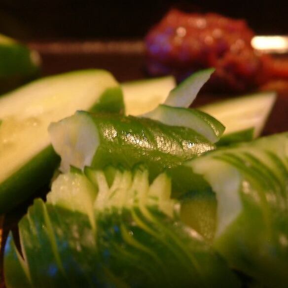 590円(税込)臭みのない「カモ」本来の香りが充実した「紅茶カモ」を丁寧にスライスして表面をバーナーで炙ります!ちぎりたて「レタス」の上に「炙りカモ」を乗っけて刻みたて「長ネギ」をトッピング!自家製「カルパッチョソース」と「バージンオリーブオイル」をかけ、更に引き立て「ブラックペッパー」をふりかけたら出来上がり!贅沢な一品をこの価格で!정중하게 슬라이스하고 표면을 버너로 굽는다! 신선한 상추 위에 놓고 "파"토핑! 자가제 「카르파치오 소스」와 「버진 올리브 오일」을 뿌려, 한층 더 돋보이는 「블랙 페퍼」를 뿌리면 완성! 사치스러운 일품을 이 가격으로!