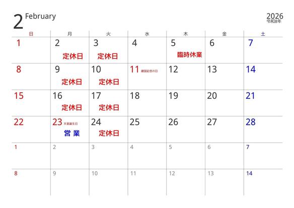 2026年2月の休み🎌