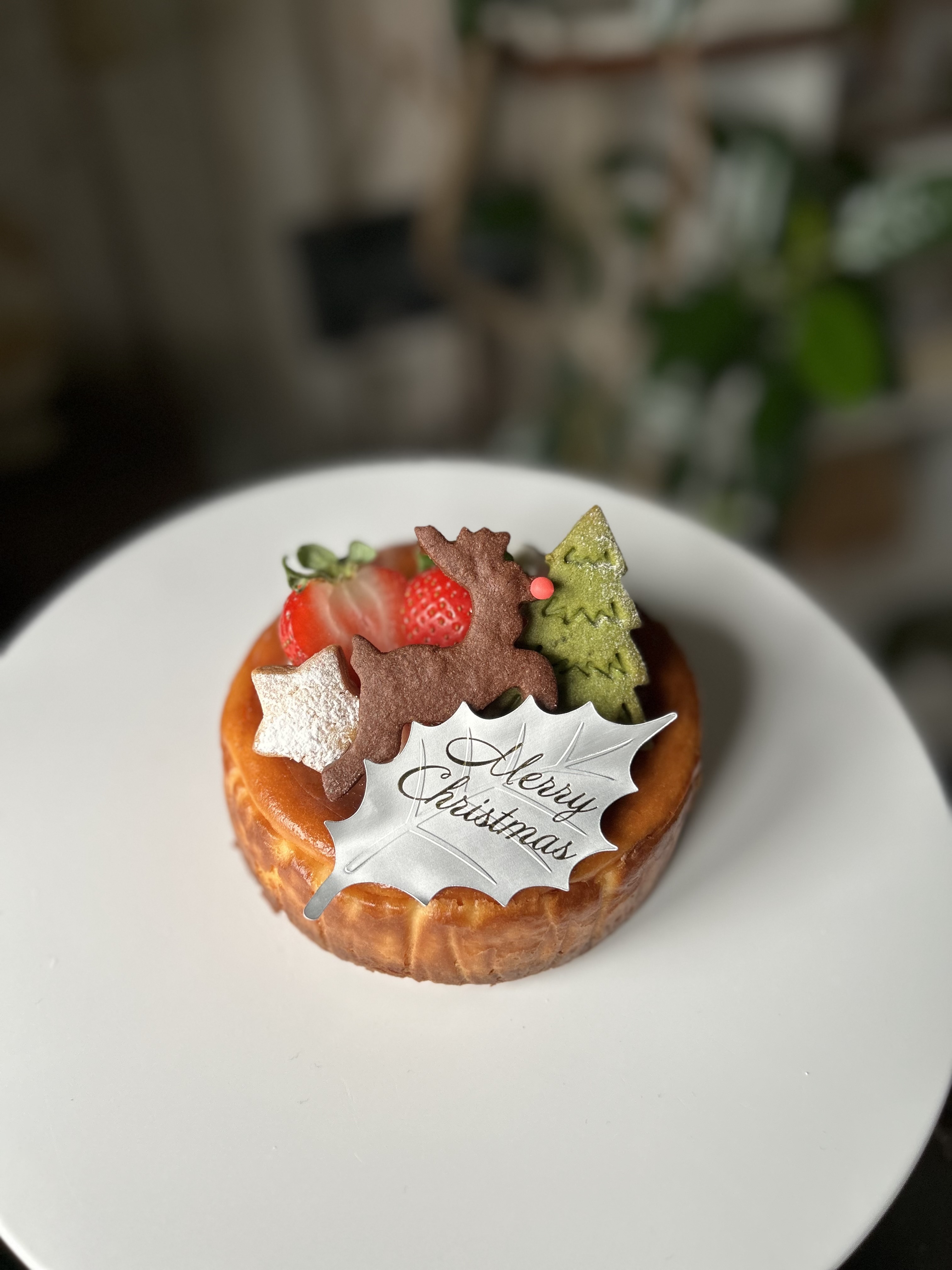 リピーターさんも多い、当店のずっしり濃厚なベイクドチーズケーキ。クリスマス仕様で可愛く仕上げています☺︎