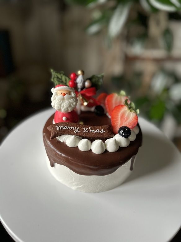 ①のショートケーキに濃厚チョコガナッシュをかけて、クリスマス限定の特別なケーキに仕上げました☺︎