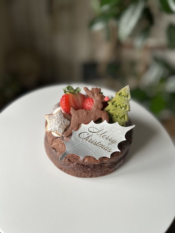 当店人気のガトーショコラをクリスマス仕様に。しっとりふわっと軽い食感、生クリームと苺と相性良くチョコ好きさんにオススメです☺︎