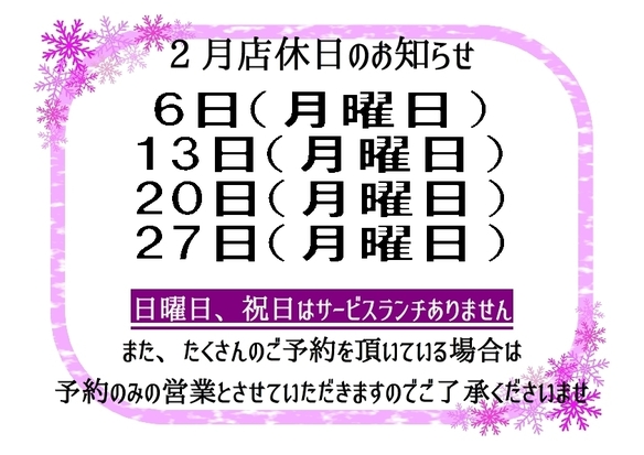 (日曜日のためサービスランチはありません)