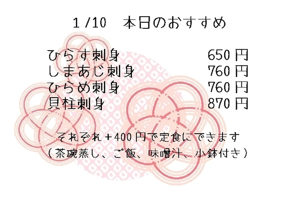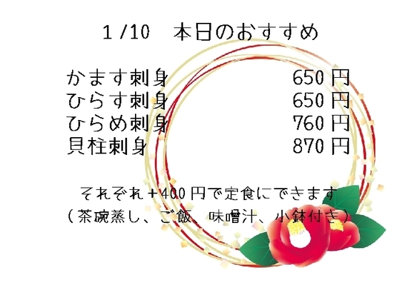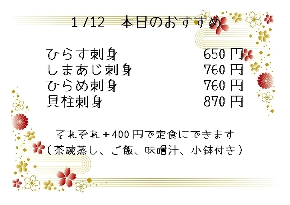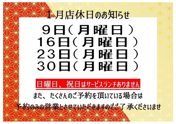 本日1月7日土曜日は昼の部、夜の部ともに満室のためご予約のお客様のみの営業とさせていただきます。