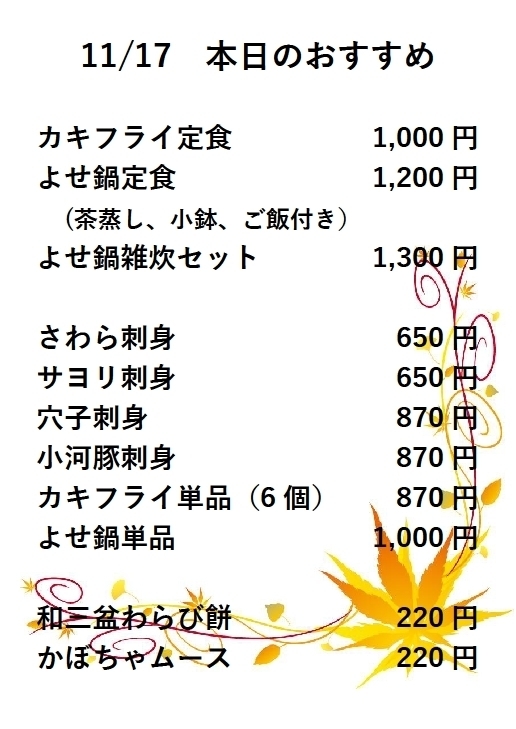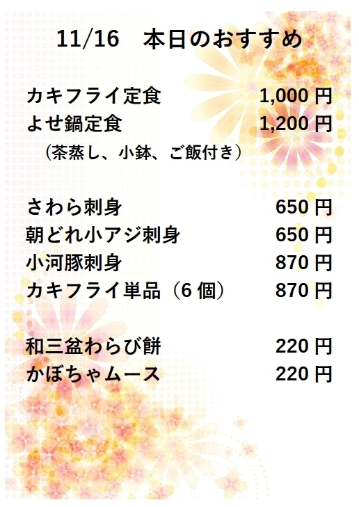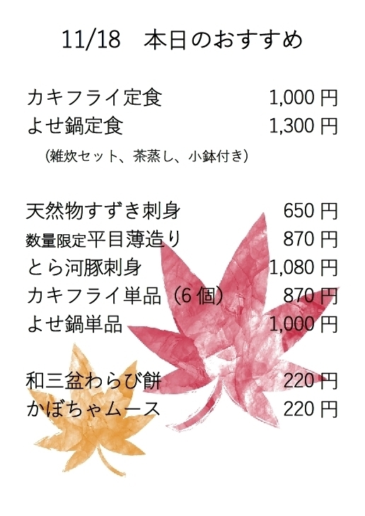 本日は日曜日なのでサービスランチはありませんが、昼夜の部ともに通常通り営業しております。