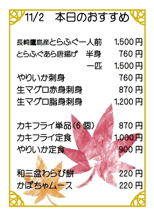 寒くなってきてふぐが美味しい季節になってきましたね。