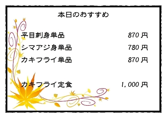 秋季限定のカキフライも数多くご用意しておりますので、この機会にぜひご来店くださいませ。