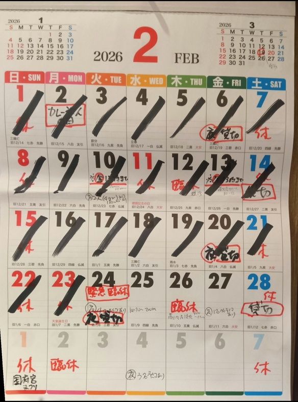 2月の営業予定がだいぶ変わりましたのでお知らせします。