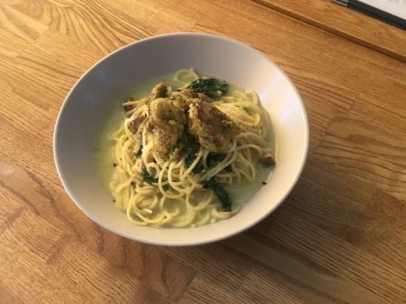 本日、13(土)の日替りランチパスタは、厚切りベーコンとほうれん草の生姜クリームパスタです🫚