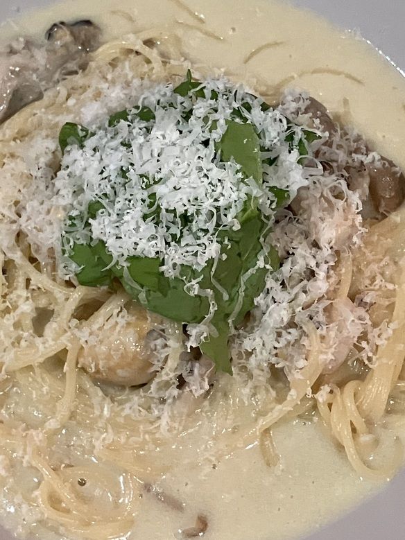 本日、18(木)の日替りランチパスタは、ミートボールとルッコラのクリームパスタです😋