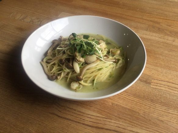 本日、19(金)の日替りランチパスタは、ホタテと浜名湖海苔のアーリオ・オーリオです😋