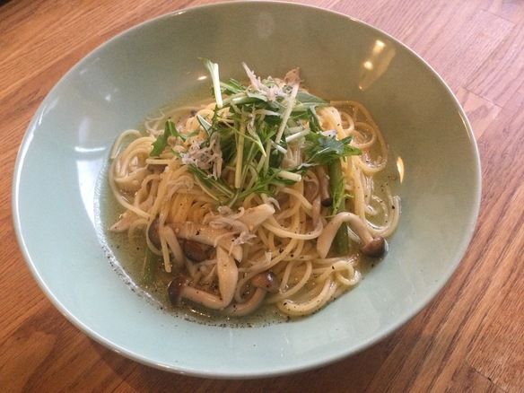 本日、23(火)の日替りランチパスタは、レモンで食べるアサリとシラスの和風パスタです。