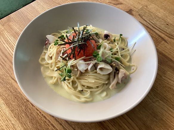 本日、15(日)の日替りランチパスタは、ヤリイカのタラコクリームパスタです😁