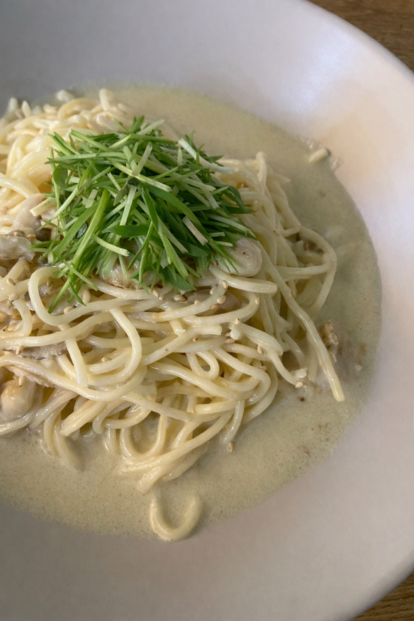 本日、18(水)の日替りランチパスタは、ホタテと水菜の和風クリームパスタです😁