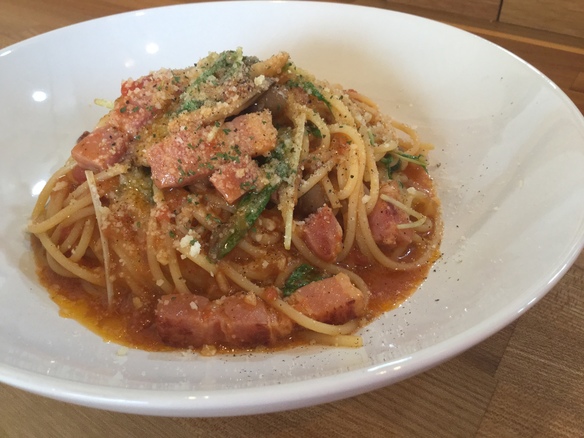 本日、29(火)の日替りランチパスタは、厚切りベーコンのトマトソースパスタです!!