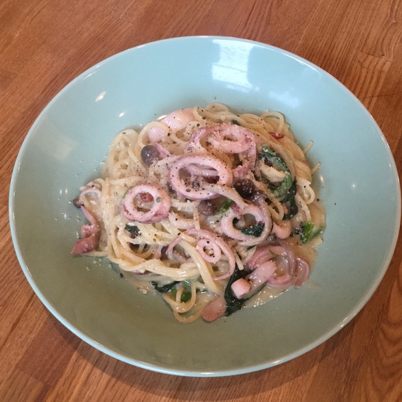 本日、19(土)の日替りランチパスタは、イカとほうれん草のクリームパスタです!!!