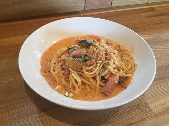本日、14(金)の日替りランチパスタは、厚切りベーコンのトマトクリームパスタです!!