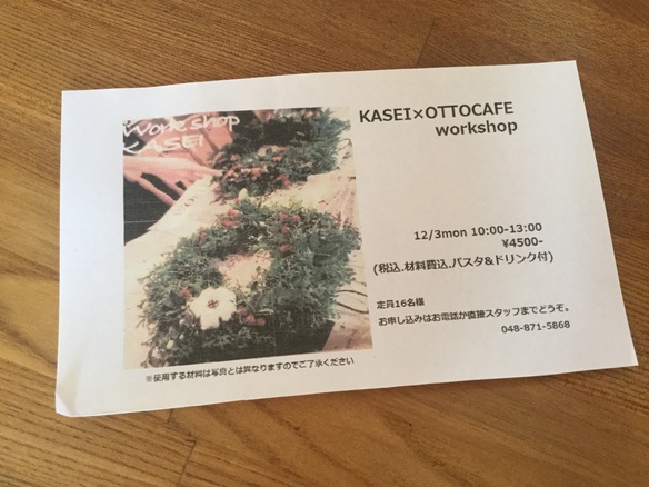 講習代、材料費、パスタ、ドリンクがついて税込¥4500と大変お得なワークショップとなっておりますので、参加ご希望の方、お気軽にスタッフ又はお電話