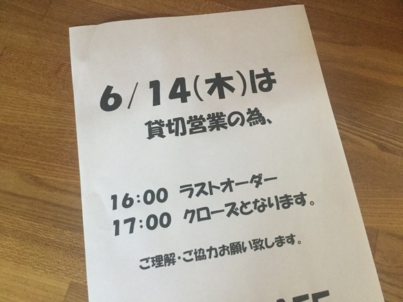 今日は夜が貸切営業の為、16時ラストオーダーの17時閉店となりますのでご注意下さいませm(_ _)m