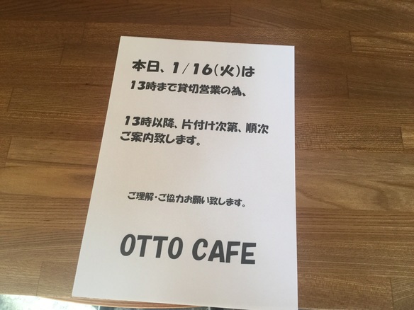 本日、11:00〜13:00まで貸切営業の為、13時以降片付け次第のオープンとなりますのでご注意下さいませ。