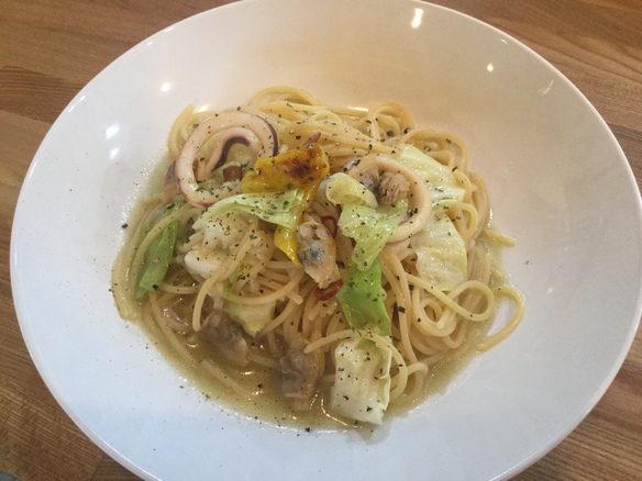 本日、8(月・祝)の日替りランチパスタはイカとあさりのクリームパスタです!