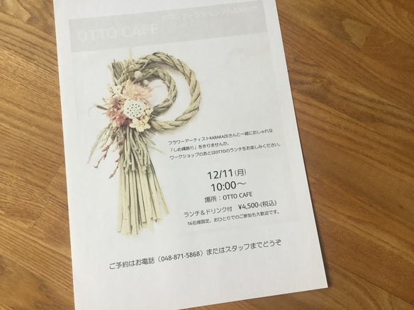 昨日お知らせしたしめ縄のワークショップですが、好評で既に半分以上埋まって来ています。お考えの方はお早めのご予約がオススメです!!