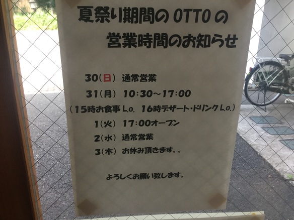 また、パンの販売ですが、明日29(土)〜8/1(火)までお休みとなります。