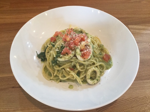 本日、26(水)の日替りランチパスタは、イカとキノコの和風クリームパスタです。