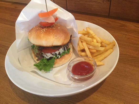 写真は昨日から始まったハンバーガープレートです!ボリューム満点!!お酒のお供にも良いですよー(๑˃̵ᴗ˂̵)あービールが飲みたい・・(>_<)