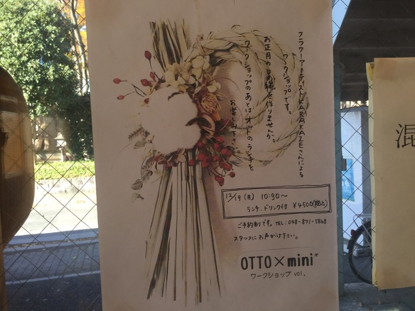 今回もmini*さんとのコラボで、KARAKAZEさんによるしめ縄のワークショップとなります。12月19日(月)10:30〜ランチ・ドリンク込み¥4500(税込)定員16名となっております。ご予約はスタッフもしくはお店までご連絡下さいませd( ̄  ̄)