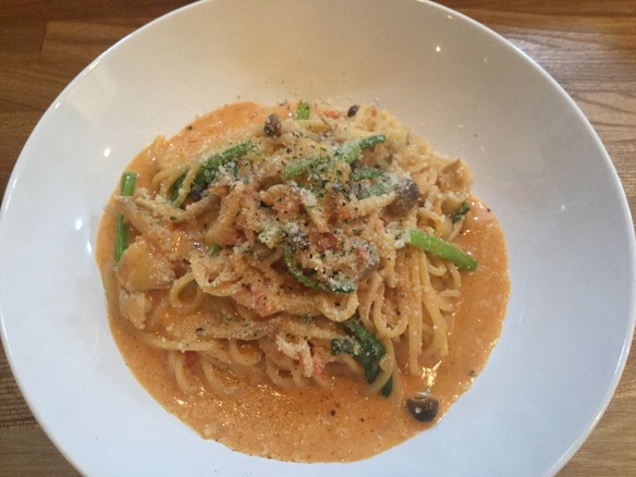 本日の日替りパスタは、アサリと白菜のペペロンチーノです。