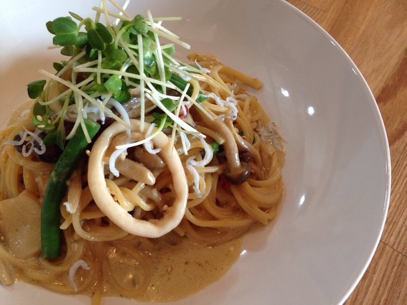 なお、本日の日替わりパスタはイカとターサイのペペロンチーノです(^O^)