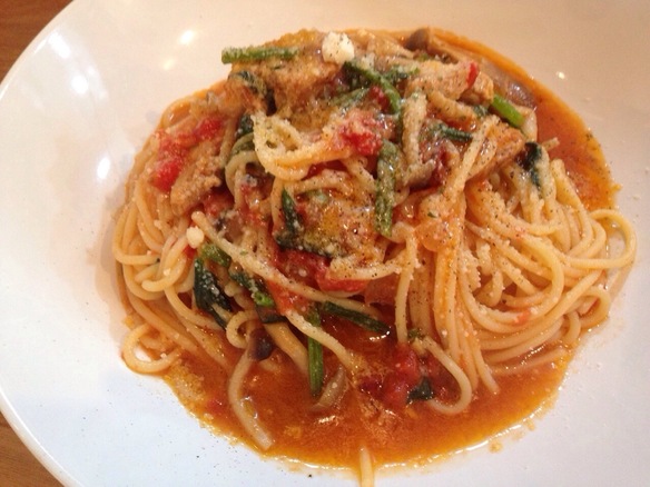 本日の日替わりパスタは『チキンとほうれん草のトマトソースパスタ』です。ぜひお試しください。