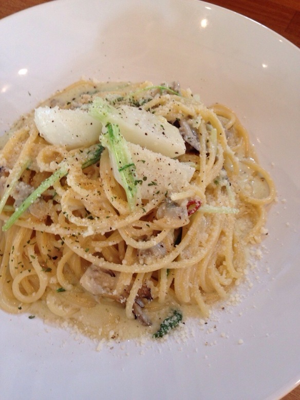 本日の日替わりパスタは『かぶとアサリのクリームパスタ』です。是非お試しください。