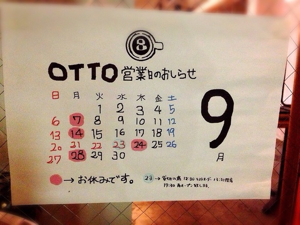 本日、オットは定休日です。またのお越しをお待ちしております!