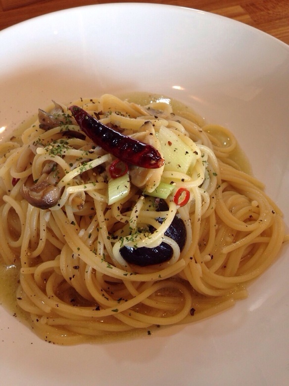 さて、本日の日替わりパスタは『あさりの和風ペペロンチーノ ¥830』です。あさり、焼き長ネギ、揚げなす、しめじと具沢山の和風パスタをご用意してますので、ぜひご利用ください!