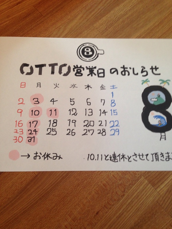 本日、OTTOは定休日です。