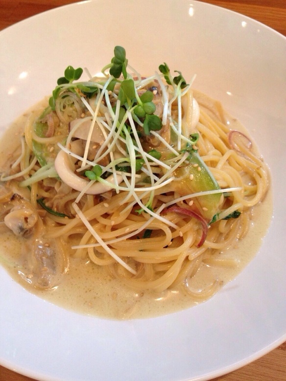 本日の日替わりパスタは『イカとアサリの和風クリームパスタ ¥830』です。