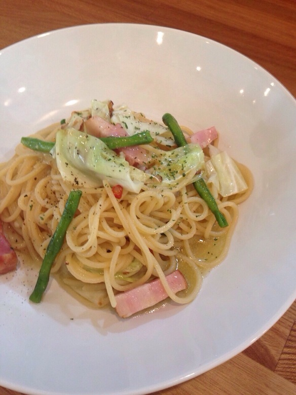 本日の日替わりパスタは『ベーコンとインゲンの塩ガーリックパスタ ¥830』です。ぜひお試しください‼︎